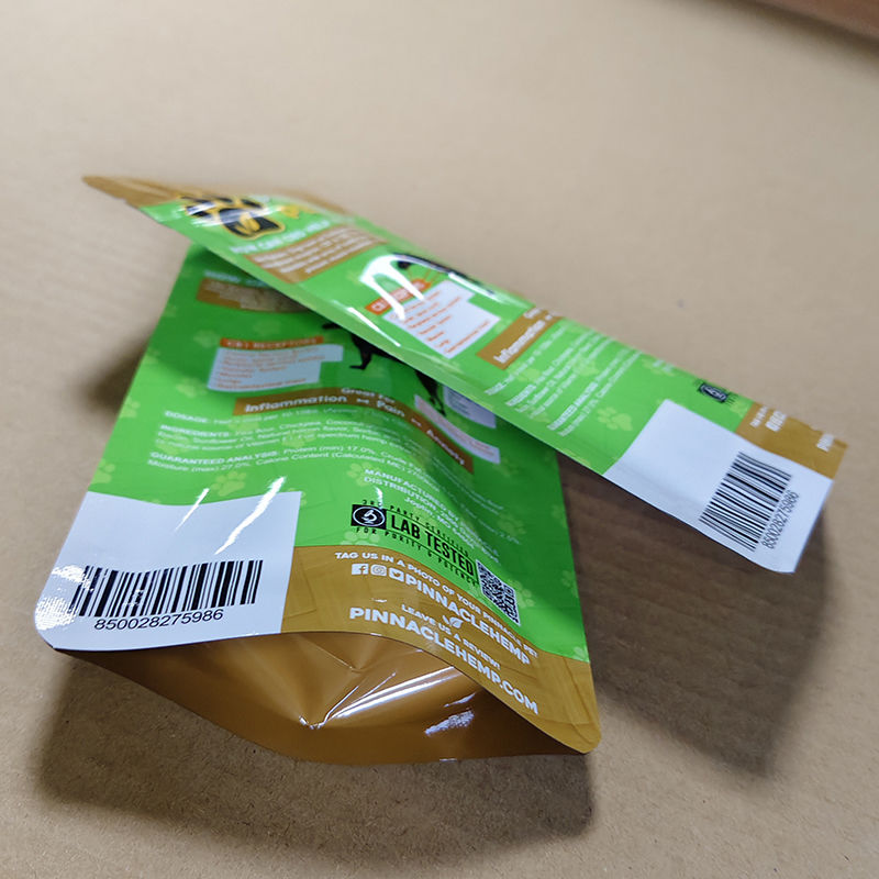 | Odporność na przebicie | Wzmocniona konstrukcja laminatu | Grubość 7Mil + warstwa usieciowanego PE wytrzymuje uderzenia ostrych krawędzi karmy dla zwierząt (np. krokietów). Przechodzi test uderzeniowy ASTM D1709 (≥16 funtów siły przebicia) |